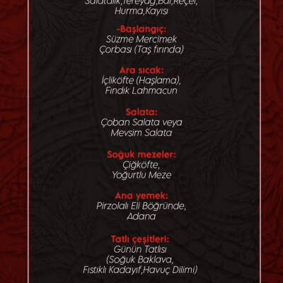 Menü Fotoğrafları